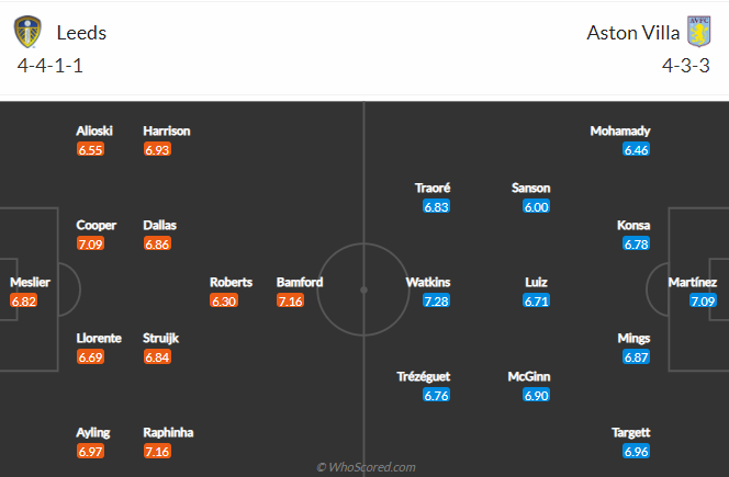 Đội hình dự kiến Leeds United vs Aston Villa: