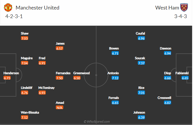 Manchester United đang có phong độ không cao thời gian gần đây, họ không thua nhưng để hòa quá nhiều. Điều này khiến đội bóng này đã để Manchester City bỏ xa đến 14 điểm trên bảng xếp hạng, chiến thắng trước chính đối thủ cùng thành phố ở vòng đấu trước không làm thay đổi nhiều tình hình và thầy trò HLV Ole Gunnar Solskjaer có rất ít cơ hội lên ngôi vô địch. Dù vậy họ vẫn sẽ cố gắng chơi tốt trong phần còn lại của mùa giải và trong trận tiếp đón West Ham United, chiến thắng là điều đội chủ nhà hướng đến trước trận lượt về Europa League. Nhiều khả năng Manchester United sẽ gặp rất nhiều khó khăn mới ghi được bàn để có chiến thắng.