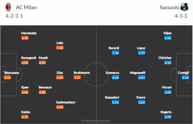 Được đánh giá cao hơn và thi đấu trên sân nhà, khả năng Milan sẽ chơi tốt trước Sassuolo và trở lại với chiến thắng khi hai đội gặp nhau tại vòng 14 Serie A.