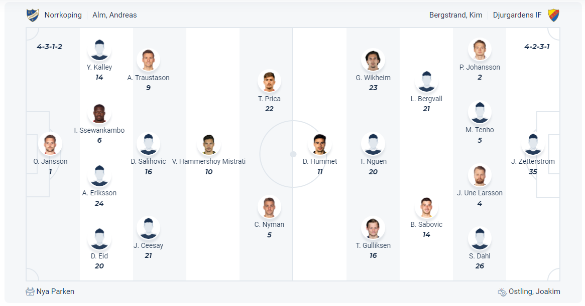 Vòng 13 giải vô địch quốc gia Thụy Điển, Norrkoping tiếp Djurgarden trên sân nhà với mục tiêu giành một kết quả tích cực sau chuỗi trận bết bát vừa qua, tuy nhiên trước đối thủ đang ở nhóm đầu bảng thì cơ hội có điểm không cao.