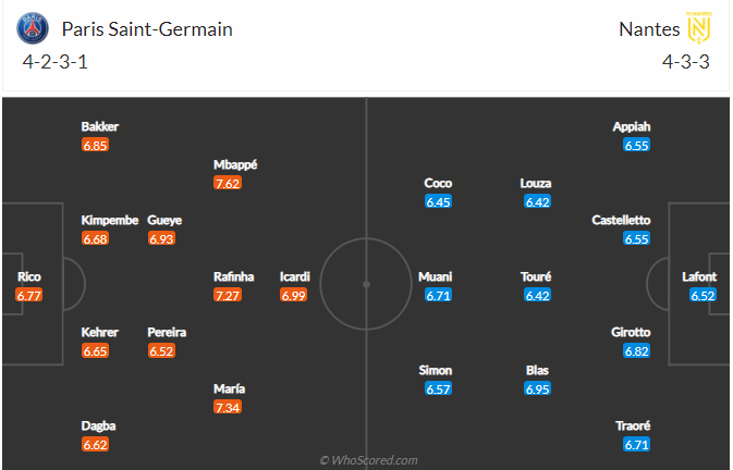 Đội hình dự kiến Paris Saint-Germain vs Nantes: