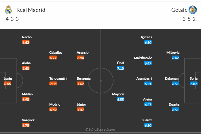 Dự đoán tỉ số trận đấu: Real Madrid 2 – 0 Getafe (Chọn Real Madrid và Xỉu trận).