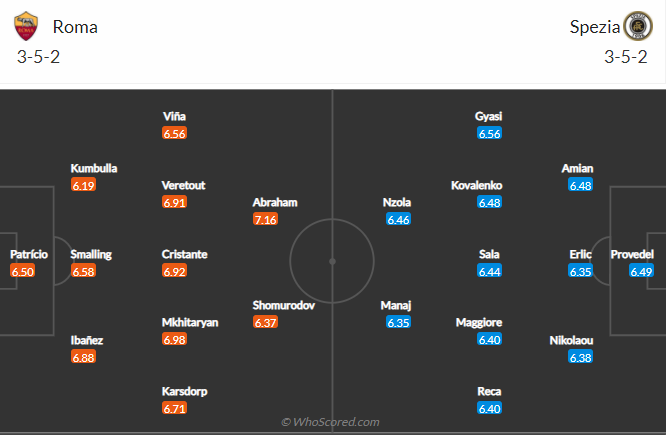Roma được đặt nhiều kỳ vọng mùa này khi đưa về HLV Jose Mourinho, tuy nhiên họ đang chơi không thuyết phục bởi chỉ đang có vị trí thứ 7 trên bảng xếp hạng. Đội bóng này thua 4 trong 6 vòng đấu gần nhất và đang kém top 4 những 9 điểm. Nếu không ngay lập tức cải thiện phong độ của mình thì mục tiêu giành vé dự Champions League sẽ ngày càng xa với. Vậy nên các cầu thủ Roma đặt quyết tâm giành chiến thắng khi tiếp Spezia trên sân nhà ở vòng 17 này, trước đối thủ yếu hơn khá nhiều thì khả năng đội bóng Thủ đô sẽ thực hiện được mục tiêu.