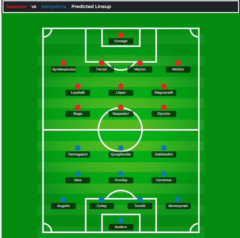 Đôi hình dự kiến Sassuolo vs Sampdoria: