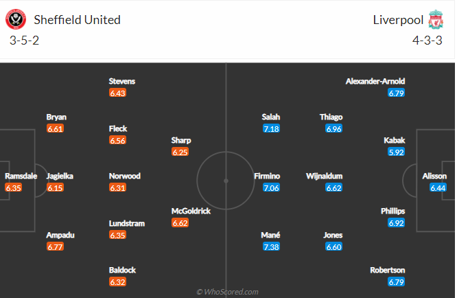 Sheffield United đã chơi khởi sắc hơn một chút thời gian gần đây khi có 2 chiến thắng trong 6 vòng đấu gần nhất, dù vậy thì thành tích đó là chưa đủ để đội bóng này có thể cải thiện vị trí của mình. Với việc mới có 11 điểm và đang kém vị trí an toàn những 14 điểm thì thầy trò HLV Chris Wilder cần một điều thần kỳ để trụ lại Premier League mùa này. Ở vòng đấu 26 này họ tiếp tục phải gặp một đối thủ mạnh nữa là Liverpool, đội bóng đang rất cần chiến thắng. Nhiều khả năng Sheffield United sẽ không thể làm được gì và tiếp tục để thua.