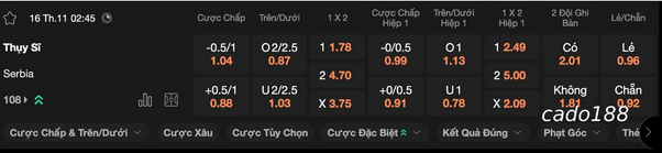 Nếu muốn nuôi hy vọng mong manh để giành để ít nhất có thể trụ lại League A, Thụy Sĩ và Serbia buộc phải giành thắng lợi trong trận đấu sắp tới. Do đó, cả hai đội tuyển sẽ không ngần ngại chơi đôi công và tạo ra thế trận ăn miếng trả miếng ngay từ những phút đầu tiên. Vì vậy, tỷ lệ xuất hiện nhiều bàn thắng trên sân vận động Letzigrund Stadion là tương đối cao, nên người chơi cso thể tham khảo lựa chọn cửa Tài 2/2.5 bàn của nhà cái 188BET để tăng khả năng thắng cược.