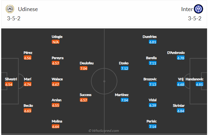Udinese đang đứng thứ 12 trên bảng xếp hạng và đã không còn mục tiêu nào cụ thể trong phần còn lại của mùa giải, điều đội bóng này hướng đến trong 4 trận đấu còn lại có lẽ chỉ là giành kết quả tốt để có thứ hạng cao hơn. Chính vì vậy sẽ không ngạc nhiên nếu đội chủ nhà chơi với tinh thần quyết tâm không cao trận này. Trước đối thủ đang rất khát chiến thắng như Inter thì khả năng Udinese sẽ không thể hiện được nhiều và chấp nhận để thua.