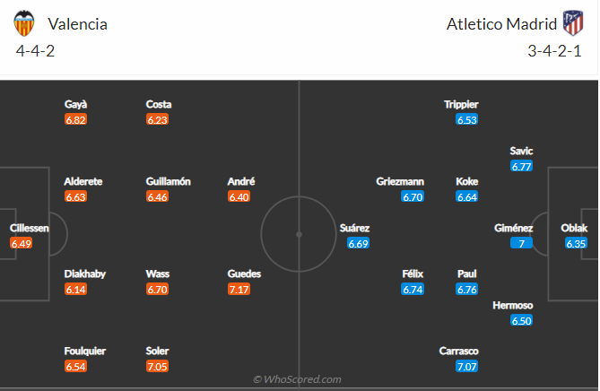 Đội hình dự kiến Valencia vs Atletico Madrid: