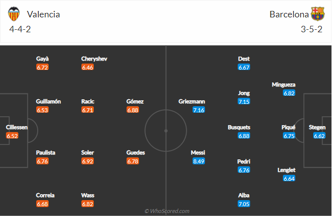 Valencia đang đứng thứ 14 trên bảng xếp hạng, với một đội bóng từng nhiều lần dự cup Châu âu thì đây là vị trí vô cùng đáng thất vọng. Thậm chỉ cho đến thời điểm này của mùa giải thì đội bóng của HLV Javi Gracia còn chưa đủ điểm trụ hạng nên điều cần làm với Valencia là giành chiến thắng để tích lũy điểm số, cũng là để chấm dứt mạch trận không thắng thời gian qua. Tuy nhiên với việc đối thủ là Barcelona thì xem ra nhiệm vụ này rất khó khăn, nhiều khả năng Valencia không thể làm được gì và phải nhận thêm một trận thua nữa.