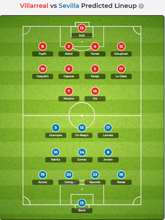 Villarreal đang đứng thứ 7 trên bảng xếp hạng và vừa mới bị loại khỏi Champions League, vậy nên điều họ có thể hy vọng lúc này là chiếc vé dự Conference League và đội bóng của HLV Unai Emery cần tối thiểu giữ được vị trí hiện tại nếu muốn dự cup Châu âu mùa tới. Chính vì vậy Villarreal cần chơi tốt trong 4 trận còn lại bởi họ chỉ hơn đội đứng sau 1 điểm, chơi tốt còn là để hy vọng có vị trí cao hơn nữa. Tuy nhiên với việc phải tiếp Sevilla thì xem ra mục tiêu này không dễ thực hiện. Nhiều khả năng Villarreal sẽ phải nhận thêm một trận thua nữa.