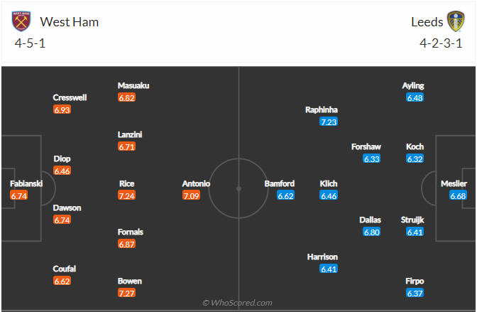 Dự đoán tỉ số trận đấu: West Ham 3 – 1 Leeds (Chọn West Ham và Tài trận).